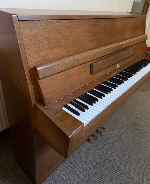 Excellent British made upright piano. The Broadwood St James was one of our best selling pianos in the 1990's. A smaller upright but with a superb tone and action performance to suit any standard made it an industry standard upright. This example is in excellent codition throughout, finished in Walnut satin it is classic looking upright.