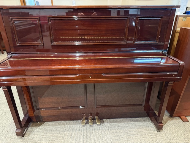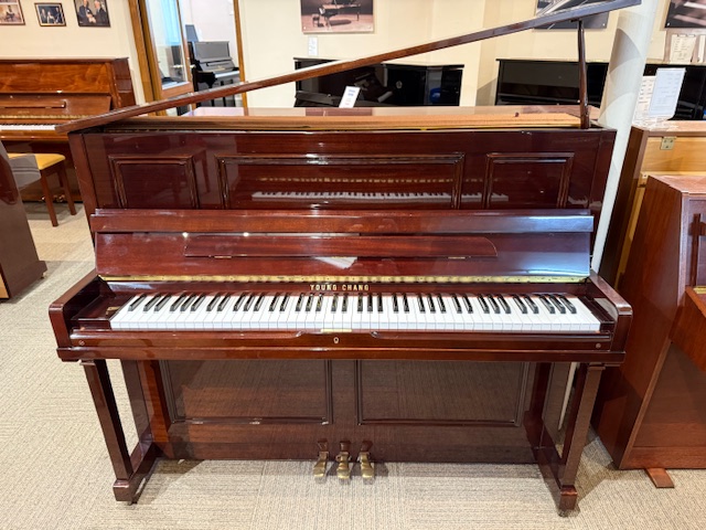 This Young Chang upright is an excellent modern piano in a traditional case. The three panelled top door along with the grand style lid has all the charm of a victorian era case but with all the benefits of a modern piano. We have fitted a new set of bass strings which give a good rich tone in the lower registers. The piano comes with a matching height adjustable stool